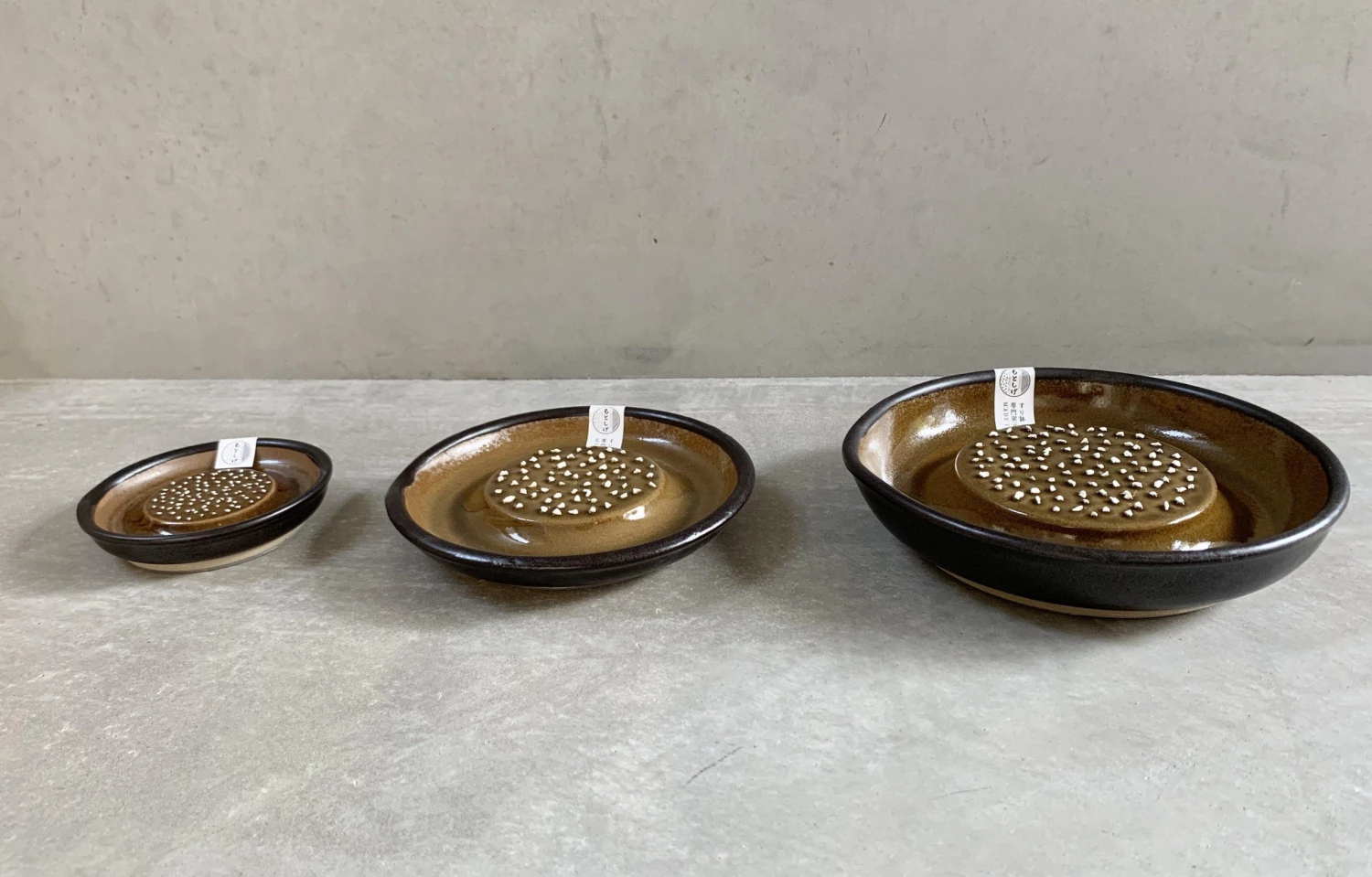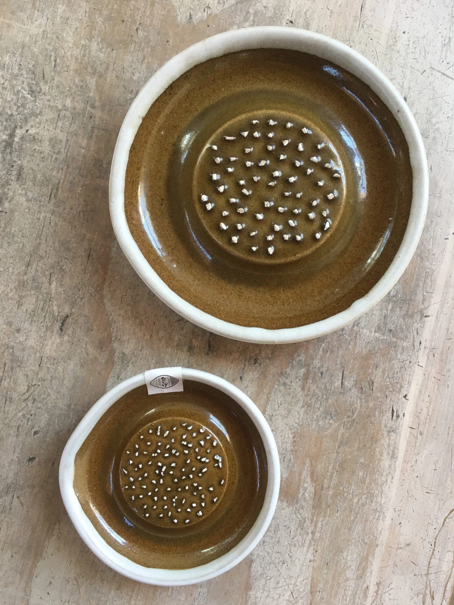 -A grater with small sharp pieces of ceramic for grating ingredients into fine paste.