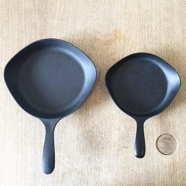 18cm size: Our new edition Sori Yanagi cast iron pan is a variation on our mini pan, in a bigger size with a handle. It is a great for cooking a 3-4 person pan dish. You can add ingredients directly into the pan and put it straight into the oven to cook! Great for Spanish omelette, shakshouka, and other easy dishes. Or use it as a stylish serving dish – I often use for serving fries.